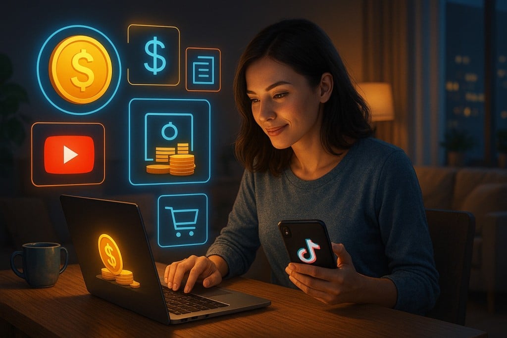 Criar conteúdo em vídeo continua sendo uma das formas mais rentáveis. Plataformas como YouTube e TikTok permitem monetização através de anúncios, parcerias e publis.